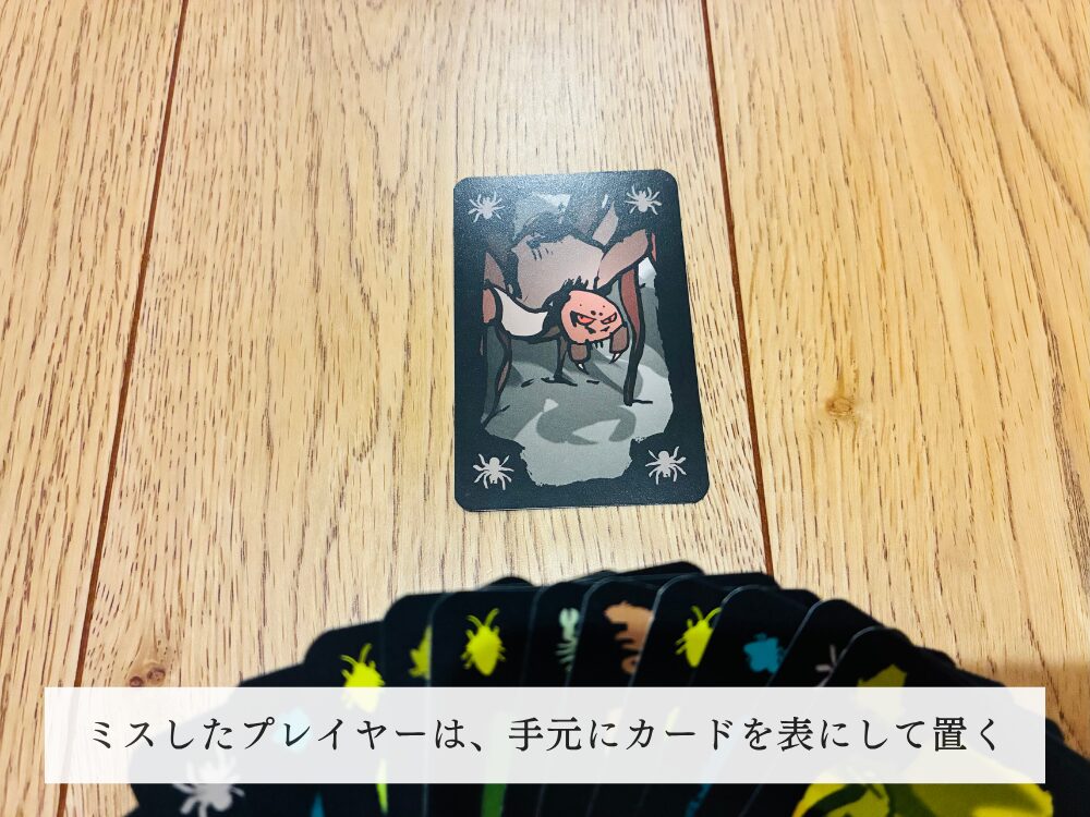 ミスをしたプレイヤーは、手元にカードを表にして置きましょう。このカードが、勝敗に関わってきます。