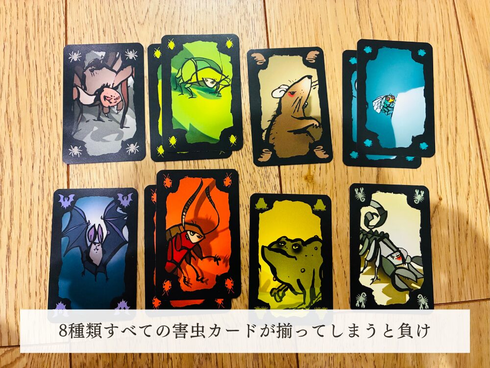 「8種類すべての害虫カードが揃うと負け」というもの。