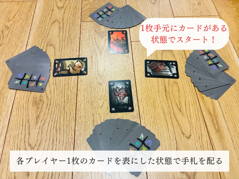 その場合、ゲーム準備の際は、各プレイヤー1枚カードを表で手元に出した状態から手札を配りましょう。
