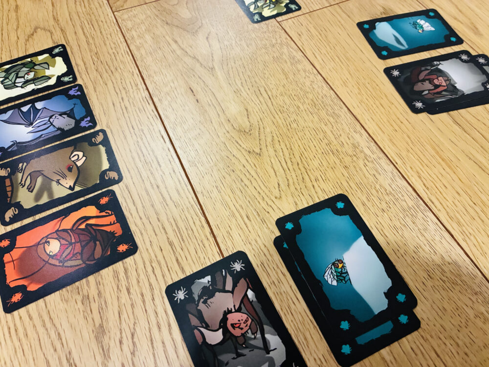 終盤になると、場にある手元のカード枚数から、集中狙いやはったりのし方が変わったりと、戦略性が増します。