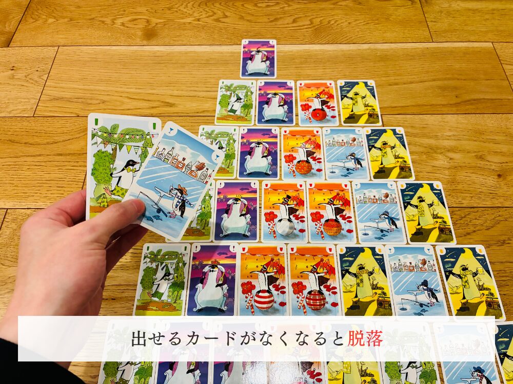 手番が来たときに、出せるカードがなくなった場合「脱落」となります。