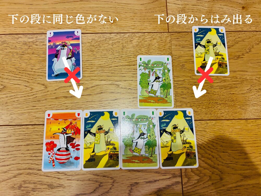 ペンギンカードを置くときには、以下の2つのルールを守る必要があります。