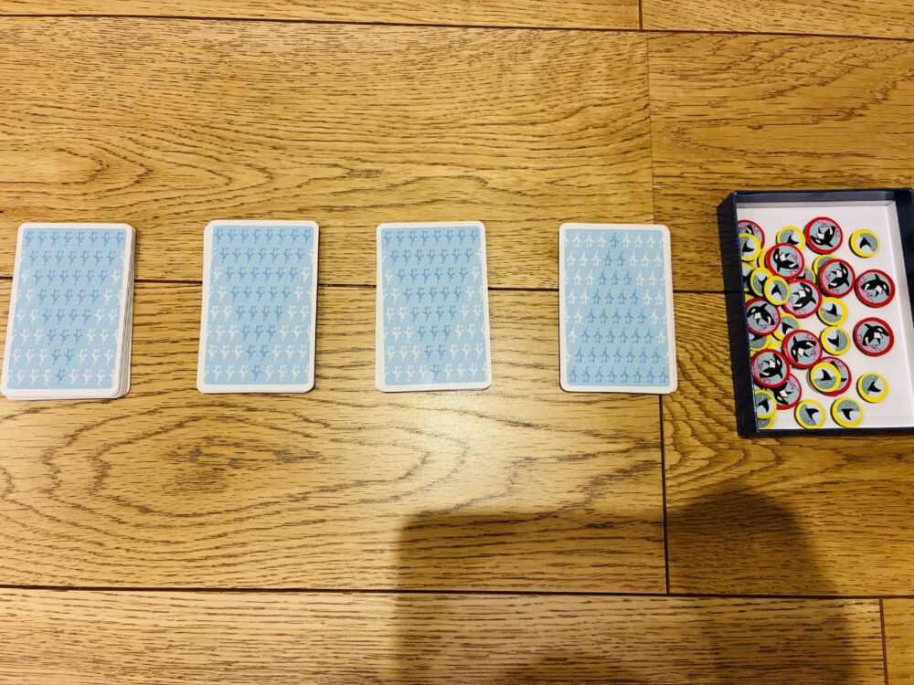 ペンギンカードを各プレイヤーに同じ枚数ずつ配ります。