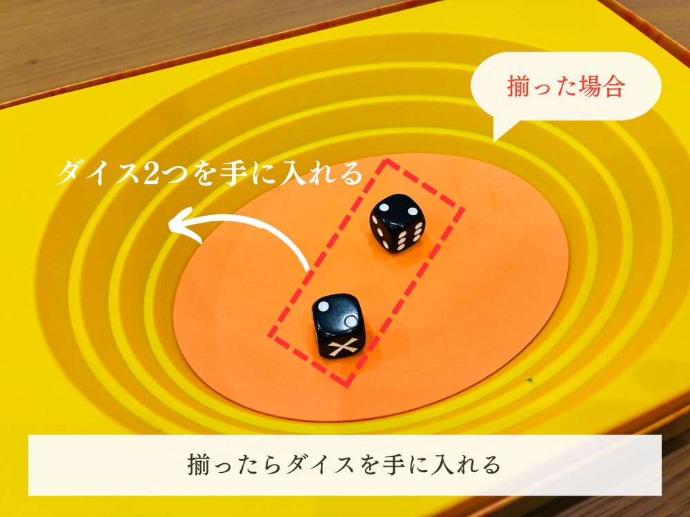 ダイスの目が揃ったら、揃ったダイスを手に入れることができます。