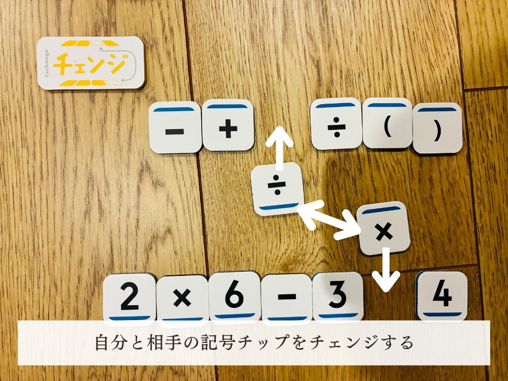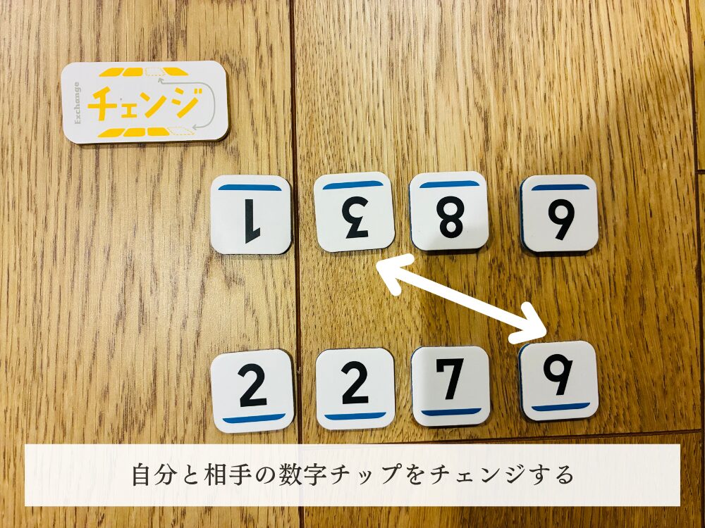 自分の数字チップや記号チップと、ほかのプレイヤーの数字チップや記号チップとチェンジできます。