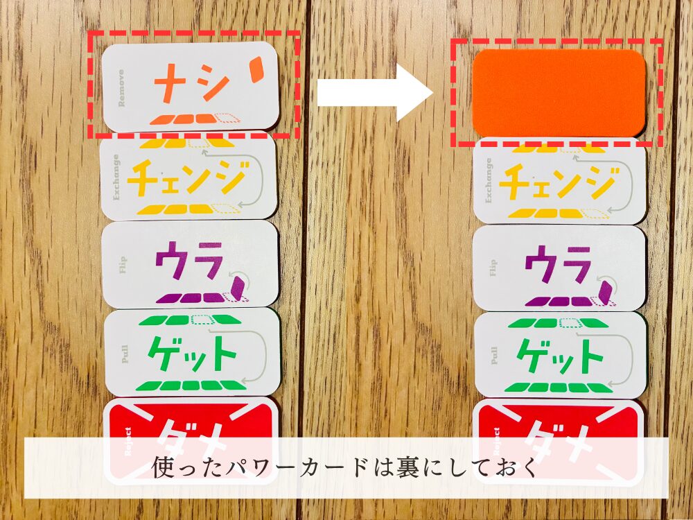 基本表面しか使わないですが、「パワーカード」の効果で裏面を使うことが出てきます。