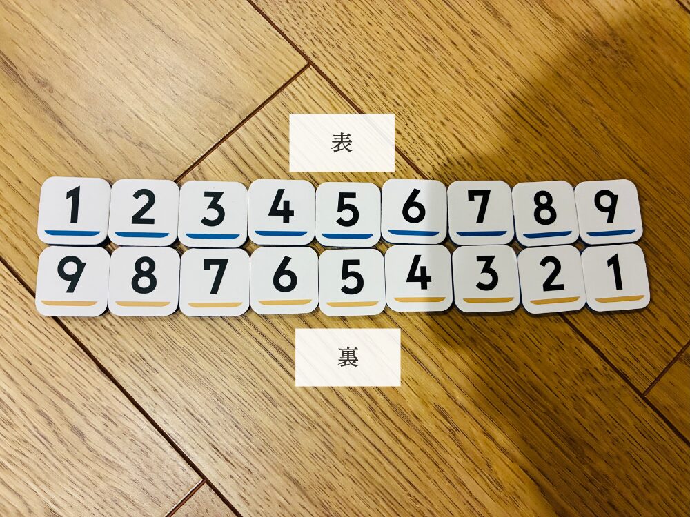 数字カードは表面と裏面があり、「表の数字+裏の数字=10」になるように描かれています。