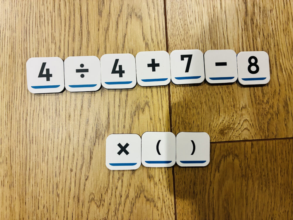 全員が数字チップを引いたら、スタートの合図とともに、答えが0になる数式を作りましょう。